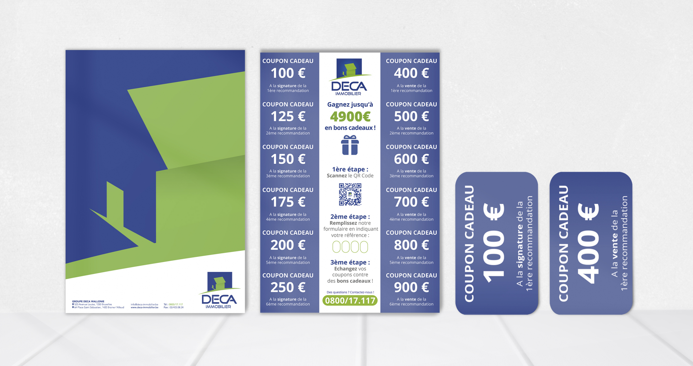 IMPORTANT : Indiquez-nous le numéro de référence repris sur la fiche de coupons qui vous a été remise ou envoyée, ainsi que les coordonnées de la personne auprès de laquelle vous souhaitez nous recommander. Un agent DECA la contactera dans les 24h00. En cas de problème ou de question, n'hésitez pas à nous contacter directement par téléphone au 0800/17.117